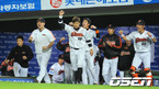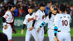 [OSEN=부산,이대선 기자] 17일 오후 부산 사직구장에서 2011 롯데카드 프로야구 플레이오프 2차전 롯데 자이언츠와 SK 와이번스의 경기가 열렸다. 경기 후 롯데 선수들이 승리의 기쁨을 나누고 있다. 롯데 자이언츠가 지긋지긋한 포