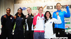 [OSEN= 백승철 인턴기자] 18일 오전 서울 청담동 리베라 호텔에서 열린 'NH농협 2011-2012 V리그' 여자부 미디어데이에 참석한 6개 구단 외국인 선수들이 기념촬영을 하고 있다. 정규리그 순위 승점제 도입과 외국인선수 3세트 출전제