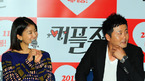 [OSEN=민경훈 기자] 18일 오후 서울 왕십리 CGV에서 열린 영화 ‘커플즈’ 언론배급시사회 및 기자 간담회에서 이시영이 세 남자배우중 공형진이 가장 멋지다고 말하고 있다. ‘커플즈’는 배우 김주혁과 이시영, 공형진, 이윤지