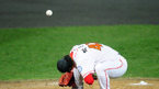 [OSEN=인천, 민경훈 기자] 2011 롯데카드 프로야구 플레이오프 3차전 SK 와이번스와 롯데 자이언츠의 경기에서 8회말 1사 주자 만루 SK 최동수의 플라이 타구를 롯데 강민호 포수가 잡아내고 있다. 19일 문학구장에서 벌어진 3차전서