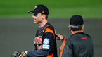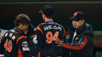 [OSEN=인천,손용호 기자]2011 롯데카드 프로야구 플레이오프 SK 와이번스와 롯데 자이언츠의 경기 6회말 양승호 감독이 마운드에 올라 사도스키를 진정시키고 내려오고 있다. 19일 문학구장에서 벌어진 3차전서 SK는 송은범을 롯데
