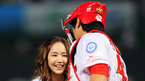 [OSEN=인천,민경훈 기자]2011 롯데카드 프로야구 플레이오프 SK 와이번스와 롯데 자이언츠의 경기에 앞서 탤런트 박민영이 시구를 한후 SK 정상호 포수에게 공을 받고 있다. 19일 문학구장에서 벌어진 3차전서 SK는 송은범을 롯데는