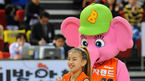 [OSEN=인천삼산월드체,이대선 기자] '2011~2012 KB국민카드 프로농구' 인천 전자랜드와 전주 KCC의 경기가 19일 인천 삼산월드체육관에서 열렸다. 경기 전 걸그룹 지피베이직 제이니가 관중을 향해 인사를 하고 있다. 문태종과 함께