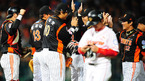[OSEN=인천,손용호 기자]'2011 롯데카드 프로야구' 플레이오프 4차전서 롯데 양승호 감독이 승리를 거둔 선수들을 반갑게 맞이하고 있다. 기사회생이다. 벼랑 끝에 몰렸던 롯데 자이언츠가 승부를 다시 원점으로 돌렸다. 기다렸던