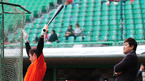 [OSEN=인천, 민경훈 기자] 20일 오후 문학구장에서 '2011 롯데카드 프로야구 플레이오프' 4차전 SK 와이번스와 롯데 자이언츠의 경기가 열릴 예정인 가운데 양팀이 훈련시간을 가졌다. 롯데 황재균이 타격연습중 양준혁 해설자가 다