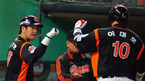 [OSEN=인천, 민경훈 기자] 20일 오후 문학구장에서 열린 '2011 롯데카드 프로야구 플레이오프' 4차전 SK 와이번스와 롯데 자이언츠의 경기에서 6회초 첫타석에서 롯데 이대호가 좌중월 솔로 홈런을 날린 후 덕아웃에서 동료들과 기
