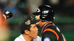 [OSEN=인천, 민경훈 기자] 20일 오후 문학구장에서 열린 '2011 롯데카드 프로야구 플레이오프' 4차전 SK 와이번스와 롯데 자이언츠의 경기에서 6회초 첫타석에서 롯데 이대호가 좌중월 솔로 홈런을 날린 후 덕아웃 앞에서 강민호와