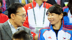 [OSEN= 백승철 인턴기자] 23일 오후 서울 방이동 올림픽공원 SK 올림픽핸드볼경기장에서 열린 한국과 일본과의 2012 런던올림픽 핸드볼 아시아 남자예선 경기, 이명박 대통령과 여자 국가대표 우선희가 이야기를 나누고 있다. 여