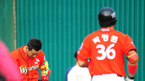 [OSEN=부산,손용호 기자]'2011 롯데카드 프로야구 플레이오프' 롯데 자이언츠와 SK 와이번스의 5차전 5회말 2사 2루서 박희수가 손아섭을 삼진으로 돌려세우고 발게 웃으며 덕아웃으로 가고 있다. 23일 부산 사직구장에서 벌어진 플