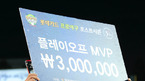 [OSEN=부산, 손용호 기자]전년도 챔프의 위력은 여전했다. 페넌트레이스 3위 SK 와이번스가 2위 롯데 자이언츠를 꺾고 5년 연속 한국시리즈 진출의 쾌거를 이뤘다. SK 박정권이 플레이오프 mvp를 수상 300만원의 상금을 받고 있다. SK