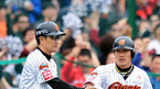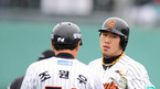 [OSEN=부산, 김영민 기자] 22일 우천으로 연기된 '2011 롯데카드 프로야구 플레이오프' 5차전 롯데 자이언츠와 SK 와이번스 경기가 23일 부산 사직야구장에서 열렸다. 1회말 1사3루 전준우 1타점 적시타를 날리고 조원우 코치의 환영