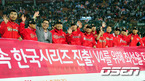 [OSEN=부산, 손용호 기자]전년도 챔프의 위력은 여전했다. 페넌트레이스 3위 SK 와이번스가 2위 롯데 자이언츠를 꺾고 5년 연속 한국시리즈 진출의 쾌거를 이뤘다. SK 선수들이 플래카드를 들고 5회연속 한국시리즈 진출을 자축하