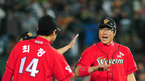 [OSEN=부산, 손용호 기자]전년도 챔프의 위력은 여전했다. 페넌트레이스 3위 SK 와이번스가 2위 롯데 자이언츠를 꺾고 5년 연속 한국시리즈 진출의 쾌거를 이뤘다. 이만수 감독이 박정권과 하이파이브를 나누고 있다. SK는 23일 사