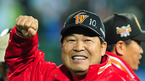 [OSEN=부산, 손용호 기자]전년도 챔프의 위력은 여전했다. 페넌트레이스 3위 SK 와이번스가 2위 롯데 자이언츠를 꺾고 5년 연속 한국시리즈 진출의 쾌거를 이뤘다. 이만수 감독이 팬 앞에서 주먹을 불끈 쥐고 있다. SK는 23일 사직