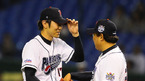[OSEN=도쿄(일본),박준형 기자]24일 오후 일본 도쿄돔에서 열린 '제2회 한일드림게임' 경기 4회말 공수교대때 병살아웃된 플레이보이즈 안길강이 이태성과 하이파이브를 하며 미안함을 보이고 있다. '제2회 한일드림게임'은 일본
