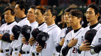 [OSEN=도쿄(일본),박준형 기자]24일 오후 일본 도쿄돔에서 열린 '제2회 한일드림게임' 경기전 플레이보이즈 선수들이 국민의례를 하고 있다. '제2회 한일드림게임'은 일본대지진 피해자들을 돕기 위한 성금을 조성하기 위해 열리