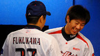 [OSEN=도쿄(일본),박준형 기자] 25일 오후 일본 도쿄 진구구장서 열린 센트럴리그 야쿠르트 스왈로스와 히로시마 토요카프의 경기중 야쿠르트 임창용이 후쿠가와와 즐겁게 이야기를 나누고 있다. 야쿠르트 스왈로즈 마무리 임창