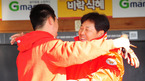 [OSEN=대구, 김영민 기자] 25일 '2011 롯데카드 프로야구 한국시리즈' 1차전 삼성 라이온즈와 SK 와이번스 경기가 대구 경기장에서 열렸다. 경기에 앞서 이만수 감독대행이 안치용과 포옹을 하고 있다. 양팀 1차전 선발로 삼성 라이