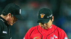 [OSEN=대구, 손용호 기자] '2011 롯데카드 프로야구 한국시리즈' 2차전 삼성 라이온즈와 SK 와이번스 4회말 1사 SK 이승호가 손가락 부상을 당해 김병주 구심이 보고 있다. 26일 대구야구장에서 벌어진 경기에서 삼성은 좌완 장원삼(2