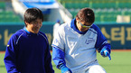 [OSEN=지형준 기자] 26일 오후 대구구장에서 열린 2011 롯데카드 프로야구 한국시리즈 2차전 삼성 라이온즈와 SK 와이번스 경기에 앞서 삼성 최형우와 진갑용이 이야기를 나누고 있다./jpnews@osen.co.kr
