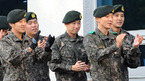 [OSEN=이대선 기자] 신화의 앤디(본명 이선호)가 31일 오전 서울 용산에 위치한 국방홍보원에서 2년여간의 군 복무를 마치고 전역했다. 배우 이준기, 이완, 서지석이 전역하는 앤디를 향해 박수를 보내고 있다. 지난해 1월 현역으