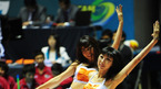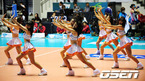 [OSEN=장충체, 민경훈 기자] 3일 오후 서울 중구 장충 체육관에서 열린 'NH농협 2011-2012 V리그' GS칼텍스와 흥국생명의 경기에서 GS칼텍스 치어리더들이 코트 위에서 화려한 공연을 펼치고 있다. / rumi@osen.co.kr