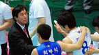 [OSEN=인천 ,백승철 인턴기자] 9일 오후 인천 도원체육관에서 열린 2011-2012 NH농협 V-리그 남자부 대한항공과 현대캐피탈의 경기 2세트 대한항공 김학민이 득점에 성공하자 신영철 감독이 격려해주고 있다. 대한항공은 이날 현대