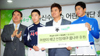 [OSEN= 백승철 인턴기자] '추추트레인' 추신수(29, 클리블랜드 인디언스)가 10일 오전 서울 무교동 어린이재단 대회의실에서 열린 '추신수 선수 어린이재단 홍보대사 위촉식'에 참석 이제훈 어린이재단 회장과 김신호, 김영환 군