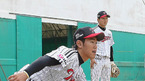 9일 경남 진주시 연암공대 야구장에서 마무리훈련중인 LG트윈스 선수단 훈련캠프에서 투수 김성현(좌)과 한희(우)가 차명석 투수코치의 펑고볼에 힘들어 하고 있다. 이들은 각 각 200개 가까운 볼을 받았다 . /사진제공=LG 트윈스