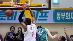 [OSEN=원주 ,백승철 인턴기자] 10일 오후 원주 치악체육관에서 열린 '2011-2012 KB국민카드 프로농구' 원주 동부 프로미와 부산 KT 소닉붐의 경기 2쿼터 KT 로드가 덩크슛을 하고 있다. 강동희 감독이 이끄는 동부는 지난 6일 울산 모비
