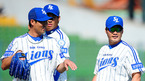 [OSEN=타이중, 지형준 기자] 2011 아시아시리즈 우승에 도전하는 한국 대표 삼성 라이온즈가 24일 오전 대만 타이중구장에서 공식 연습을 가졌다. 삼성 정인욱과 김상수가 손을 잡고 포즈를 취하고 있다. 이번 대회에는 기존의 한
