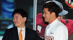 [OSEN=목동구장, 민경훈 기자] 29일 오전 서울 목동구장에서 열린 넥센 히어로즈의 이택근 환영식 및 기자회견에서 이택근과 턱돌이가 포토타임을 갖고 있다. 이장석 넥센 대표이사는 이날 환영식에서 기존에 이택근이 사용하던