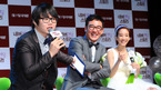 [OSEN=박준형 기자] 19일 오전 서울 이화여고 100주년 기념관에서 진행된 영화 '네버엔딩 스토리' 제작보고회에서 배우 엄태웅과 정려원이 장난을 치자 최효종이 장난 멘트를 하고 있다. 영화 '네버엔딩 스토리'는 시한부 커플의