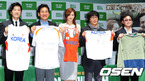 [OSEN=이대선 기자] 영화 '페이스메이커' (감독 김달중) 제작보고회가 20일 오전 서울 광진구 자양동 롯데시네마 건대입구에서 열렸다. 배우 고아라가 영화 속에서 입었던 유니폼에 사인을 하고 있다. '연기 본좌' 김명민의 마라