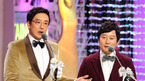 [OSEN=이대선 기자] '2011 KBS 연예대상'이 24일 오후 서울 여의도 KBS홀에서 열렸다. 배우 김승우와 개그맨 이수근이 시상자를 발표하고 있다. KBS 2TV '개그콘서트'와 '가족의 탄생'의 김병만, '안녕하세요'와 '자유선언 토요일-불후의