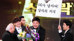 [OSEN=이대선 기자] '2011 KBS 연예대상'이 24일 오후 서울 여의도 KBS홀에서 열렸다. 방송인 양준혁이 MC 부문 신인상을 수상하고 남자의 자격 멤버들에게 축하를 받고 있다. KBS 2TV '개그콘서트'와 '가족의 탄생'의 김병만, '안녕하세