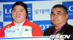 [OSEN = 백승철 기자] 26일 오후 서울 소공동 롯데호텔에서 열린 '롯데백화점 장미란 선수 및 재단 후원 협약식'에서 장미란과 부친 장호철이 기념촬영을 갖고 있다. 이날 열린 후원 협약식에서 롯데백화점은 후원금 총 1억 원을