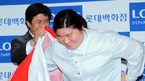 [OSEN = 백승철 기자] 26일 오후 서울 소공동 롯데호텔에서 열린 '롯데백화점 장미란 선수 및 재단 후원 협약식'에서 장미란이 기념 자켓을 입고 있다. 이날 열린 후원 협약식에서 롯데백화점은 후원금 총 1억 원을 장미란 선수에
