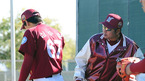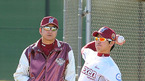 [OSEN=서프라이즈(애리조나), 민경훈 기자] 29일(한국시간) 미국 애리조나주 서프라이즈 '텍사스 레인저스 볼파크'에서 진행된 넥센 스프링캠프에서 정민태 코치가 심수창에게 투구폼에 대해 알려주고 있다. 지난 15일 미국 애리