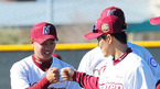 [OSEN=서프라이즈(애리조나), 민경훈 기자] 31일(한국시간) 미국 애리조나주 서프라이즈 '텍사스 레인저스 볼파크'에서 진행된 넥센 스프링캠프에서 김병현과 박종윤이 하이파이브를 하고 있다. 지난 15일 미국 애리조나주 서프라
