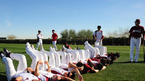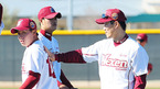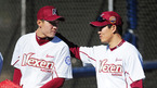 [OSEN=서프라이즈(애리조나), 민경훈 기자] 31일(한국시간) 미국 애리조나주 서프라이즈 '텍사스 레인저스 볼파크'에서 진행된 넥센 스프링캠프에서 수비훈련중 김병현이 박종윤의 등을 치고 있다. 지난 15일 미국 애리조나주 서