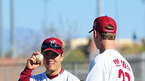 [OSEN=서프라이즈(애리조나), 민경훈 기자] 31일(한국시간) 미국 애리조나주 서프라이즈 '텍사스 레인저스 볼파크'에서 진행된 넥센 스프링캠프에서 김병현이 나이트에게 말을 걸고 있다. 지난 15일 미국 애리조나주 서프라이즈로