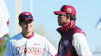 [OSEN=서프라이즈(애리조나), 민경훈 기자] 31일(한국시간) 미국 애리조나주 서프라이즈 '텍사스 레인저스 볼파크'에서 진행된 넥센 스프링캠프에서 김병현이 김시진 감독과 즐겁게 얘기를 나누고 있다. 지난 15일 미국 애리조나