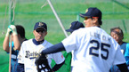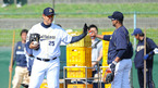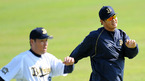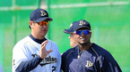 [OSEN=미야코지마(오키나와), 이대선 기자] 1일 일본 오키나와현 미야코지마 시민구장에서 열린 일본프로야구 버팔로 오릭스의 스프링캠프 첫 훈련에서 오카다 감독이 수비 훈련 중인 이대호를 바라보고 있다. 이대호와 백차승