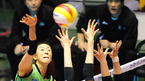[OSEN=장충체 ,백승철 기자] 4일 오후 서울 장충체육관에서 열린 '2011-2012 NH농협 V리그' 여자부 GS칼텍스와 현대건설의 경기 2세트 현대건설 황연주의 스파이크가 GS칼텍스 정대영의 브로킹에 막히고 있다. 이선구 감독이 이끄는 GS