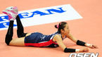 [OSEN=인천,지형준 기자] 5일 오후 인천 도원실내체육관에서 '2011-2012 NH농협 V리그' 여자부 흥국생명과 KGC인삼공사의 경기가 열렸다. 2세트 인삼공사 한유미가 볼을 살리지 못하고 아쉬워하고 있다./jpnews@osen.co.kr