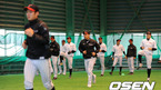 [OSEN=이시카와(오키나와), 이대선 기자] 6일 일본 오키나와현 우루마시 이시키와 구장에서 진행된 LG 스프링캠프에서 LG 선수들이 달리기를 하고 있다. LG는 오는 11일 주니치 드래건스와의 대결을 비롯해 국내외 구단과 18차례 경