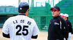 [OSEN=이시카와(오키나와), 이대선 기자] 8일 일본 오키나와현 우루마시 이시키와 구장에서 진행된 LG 스프링캠프에서 김기태 감독이 나성용과 이야기를 하고 있다. 전 선수가 호흡을 맞추는 이번 LG의 스프링캠프는 주전 확보를