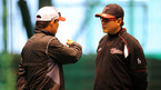[OSEN=이시카와(오키나와), 이대선 기자] 8일 일본 오키나와현 우루마시 이시키와 구장에서 진행된 LG 스프링캠프에서 김기태 감독이 조계현 코치와 이야기를 나누고 있다. 전 선수가 호흡을 맞추는 이번 LG의 스프링캠프는 주전