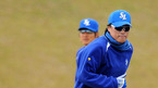 [OSEN=온나손(오키나와), 이대선 기자] 9일 일본 오키나와 온나손 아카마구장에서 진행된 삼성 스프링캠프에서 이승엽이 펑고를 치는 류중일 감독을 향해 사인을 보내고 있다. 괌에서 실시한 1차 전지 훈련에서 실전을 대비해 몸